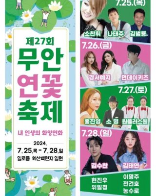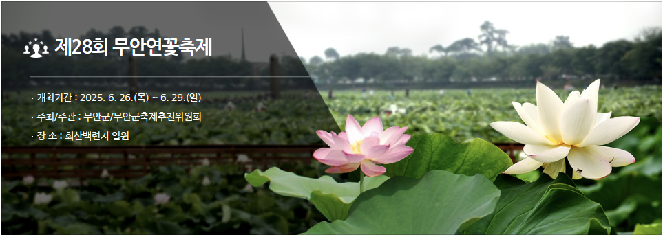 - 무안연꽃축제: 2025년 6월 26일부터 29일까지 무안 일로 회산백련지에서 개최됩니다. 화려한 개막공연과 썸머 콘서트, 야간 경관 조명 등 다채로운 프로그램이 준비되어 있습니다. 주변 무안 갯벌랜드, 홀통해수욕장 등과 연계하여 여행 계획을 세워보세요!